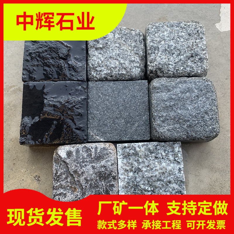 花岗岩石材铺路自然防滑小料石剥离面深灰色拼色天然石块马蹄石